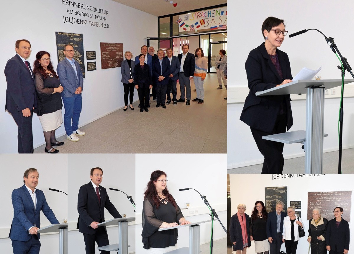 Die Enthüllung der Gedenktafeln für die Opfer der Weltkriege, die im Zuge der Bauarbeiten während der Umgestaltung des G...